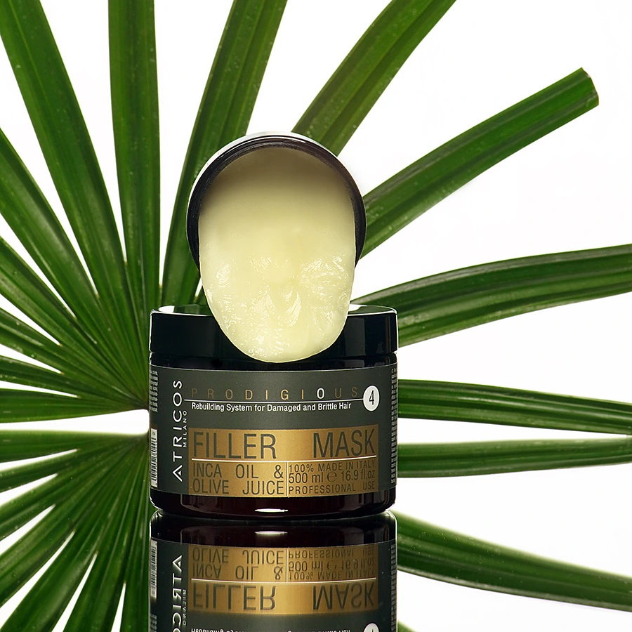Mascarilla capilar voluminizadora de origen vegetal. Rica crema con Ácido Hialurónico Reticulado de origen biotecnológico, restablece el tratamiento de reconstrucción realizado en el salón permitiendo un mantenimiento eficaz. Su sistema está compuesto por una jaula de ácido hialurónico que contiene los principios activos, como el Aceite de Inca y el Jugo de Oliva, protegiéndolos de los agentes externos y permitiendo una liberación gradual de sus propiedades nutritivas, reafirmantes y elastificant.