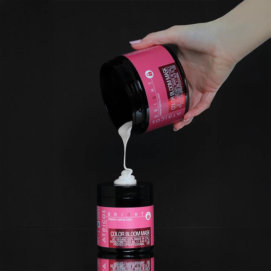 Maschera per capelli colorati. L’AC Vegan Kerazyme® Protect, attivo naturale di origine vegetale, crea un film protettivo sui capelli in grado di trattenere i pigmenti e prolungare così la durata del colore. Idrata in profondità, lasciando i capelli facili da pettinare, morbidi e lucidi.