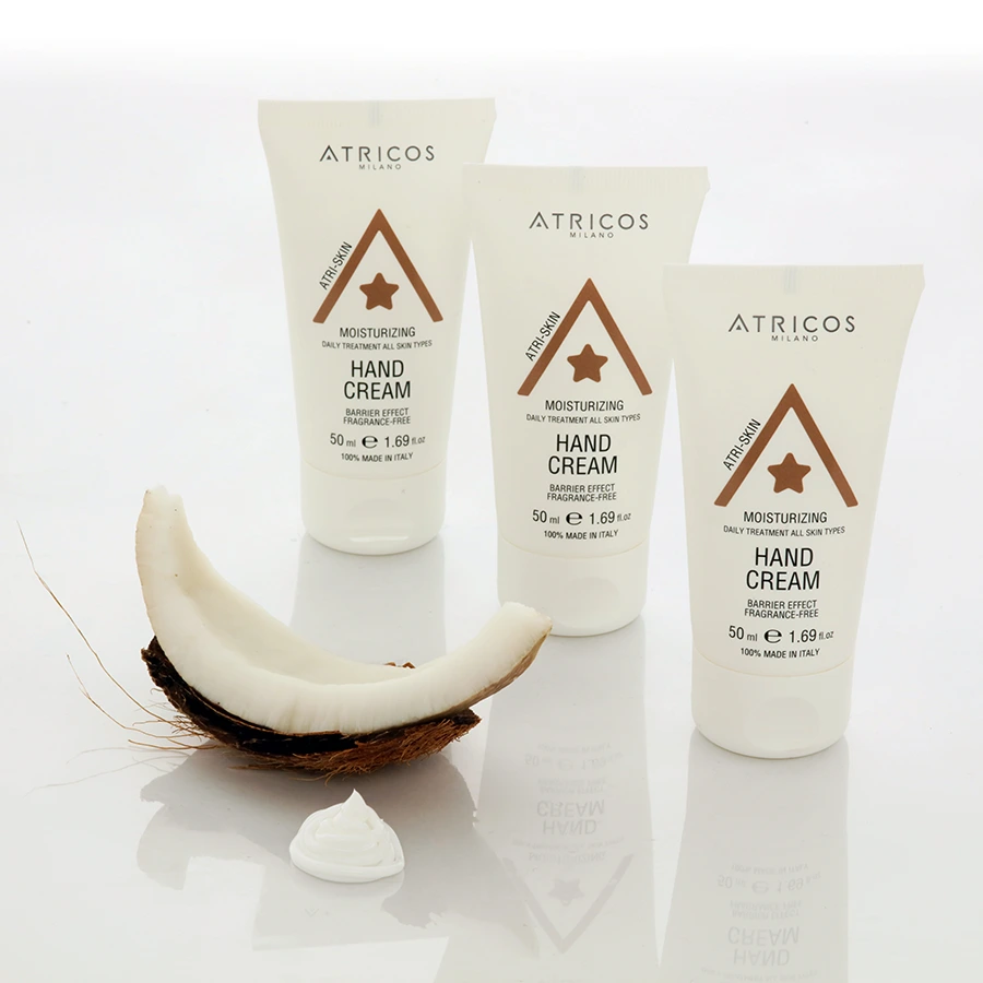 Atricos Crema Mani Idratante, lenisce e rigenera la pelle. Crea un effetto barriera che aiuta a prevenire screpolature e irritazioni senza ungere. La sua formula delicata e priva di profumo è adatta a tutti i tipi di pelle, anche a quelle più sensibili.